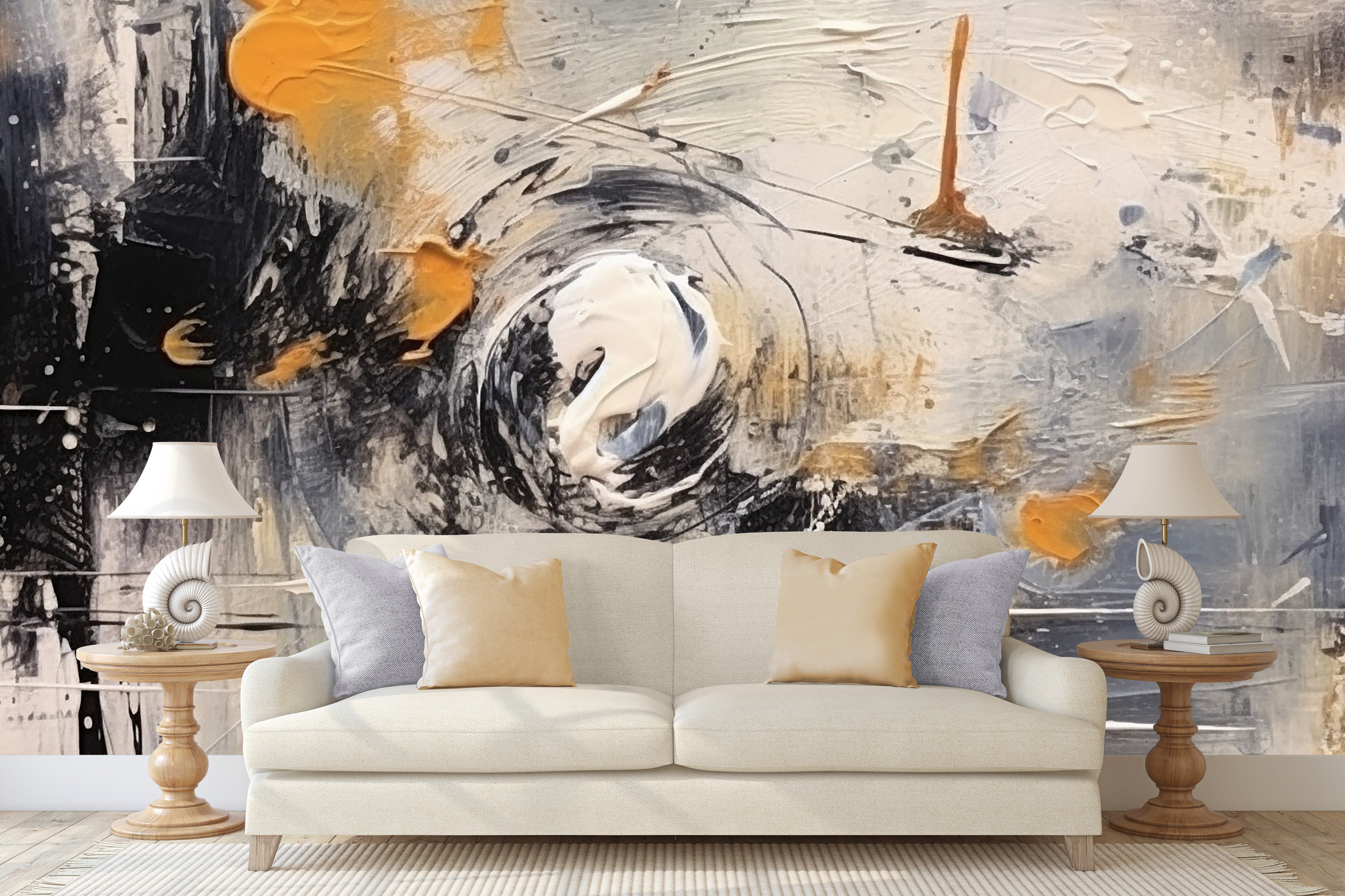 Acrylic on Canvas Collection, where minimalist elegance meets modern artistry. These wallpaper designs feature a sophisticated palette of black, grey, and white, accented with subtle touches of yellow ochre. Perfect for creating a contemporary and stylish atmosphere, these murals bring a refined yet vibrant touch to any space. Elevate your interiors with the timeless beauty and bold contrasts of our Acrylic on Canvas Collection.