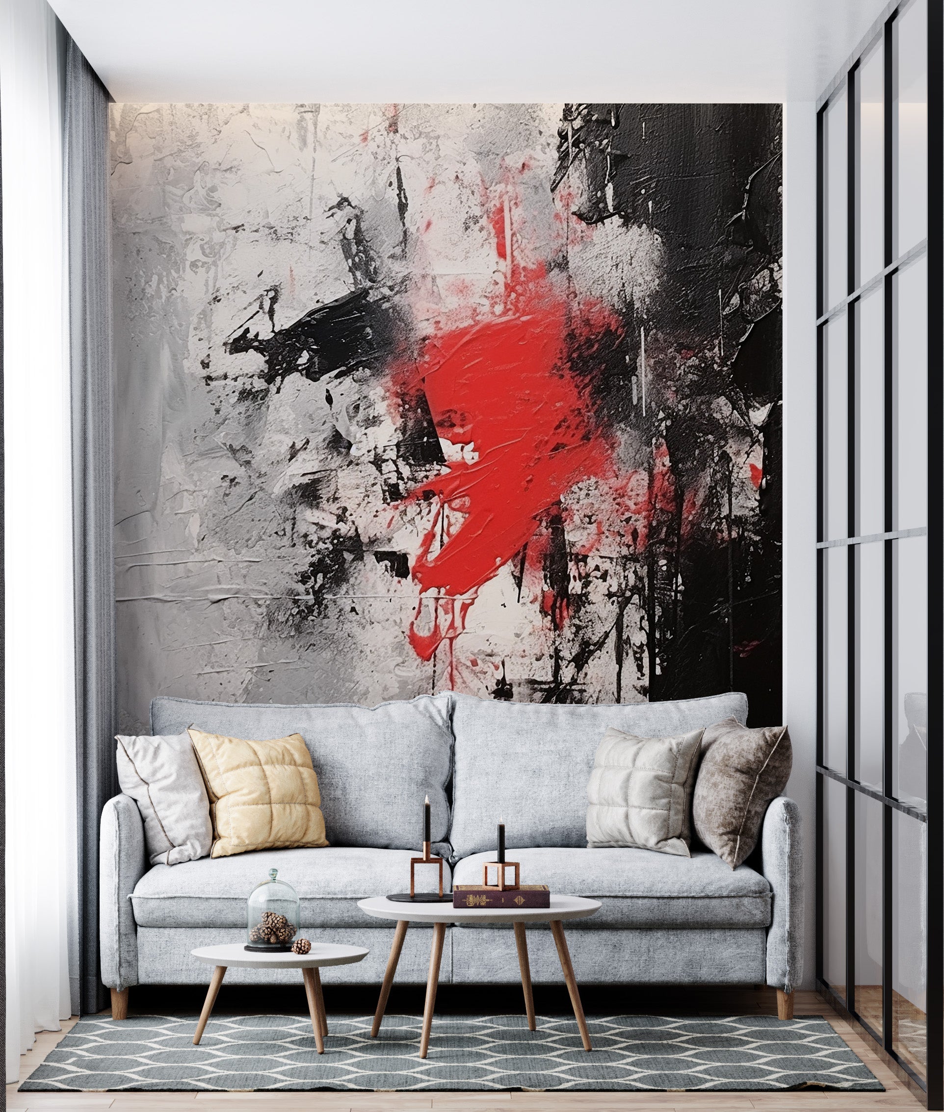 Discover the bold and sophisticated beauty of our Acrylic on Canvas Collection, featuring abstract designs in black, white, and grey with striking red accents. These wallpapers bring a modern, artistic flair to any space, blending minimalist elegance with dynamic color contrasts. Perfect for creating a contemporary and stylish atmosphere, each mural offers a unique visual impact.