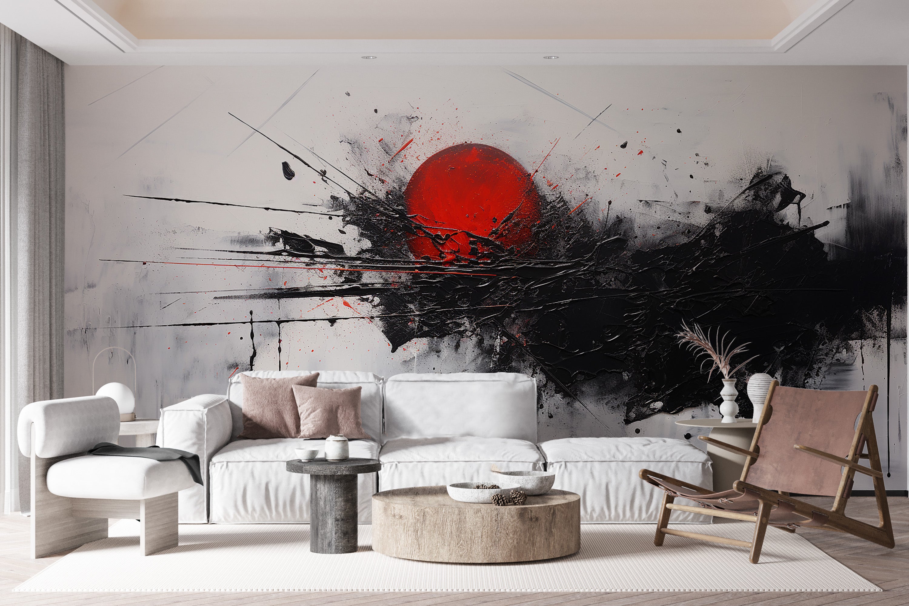 Transform your space with the dynamic and sophisticated designs of our Abstract Collection. This wallpaper features a bold fusion of shapes and abstract forms in a rich palette of deep reds, blacks, and warm whites. The interplay of textures and colors creates a striking visual impact, perfect for adding depth and contemporary elegance to any room.