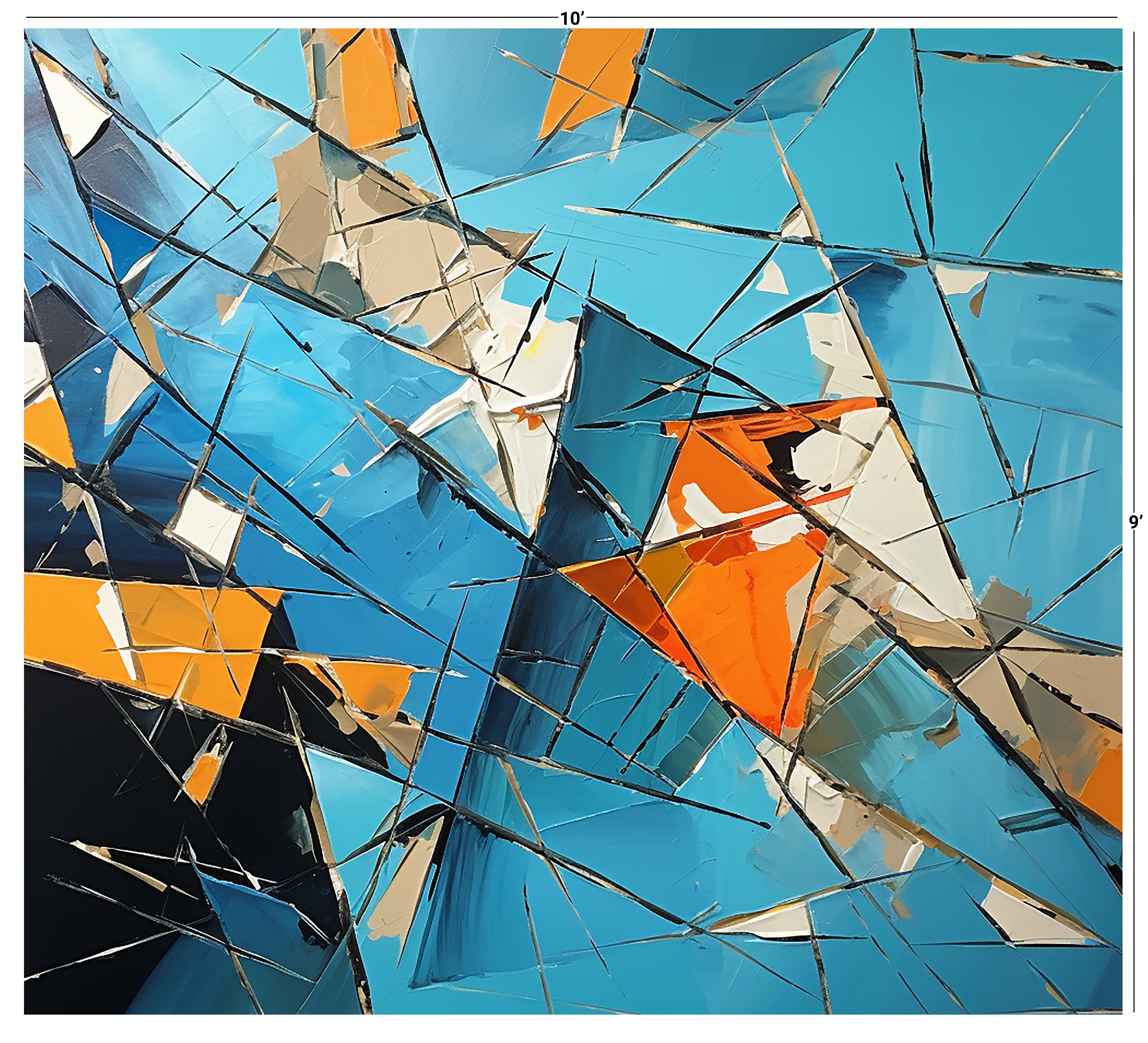If your wall has two slants, simply identify and measure the longest part of the wall in both the width and the height. Again, we will produce your mural as a square or rectangle, with the cutaways taking place during installation.