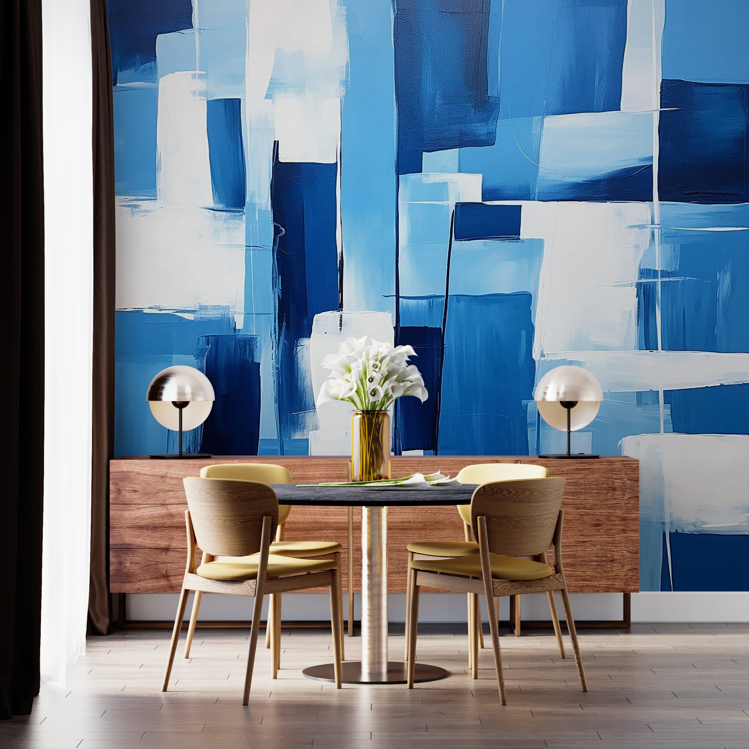 Discover the vibrant allure of our Acrylic on Canvas Collection, featuring bold and dynamic wallpaper designs. Each piece in this collection bursts with Blues creating an energetic and lively ambiance. Transform your space with these striking, art-inspired murals that capture the essence of modern creativity. Perfect for adding a splash of color and contemporary flair to any room.