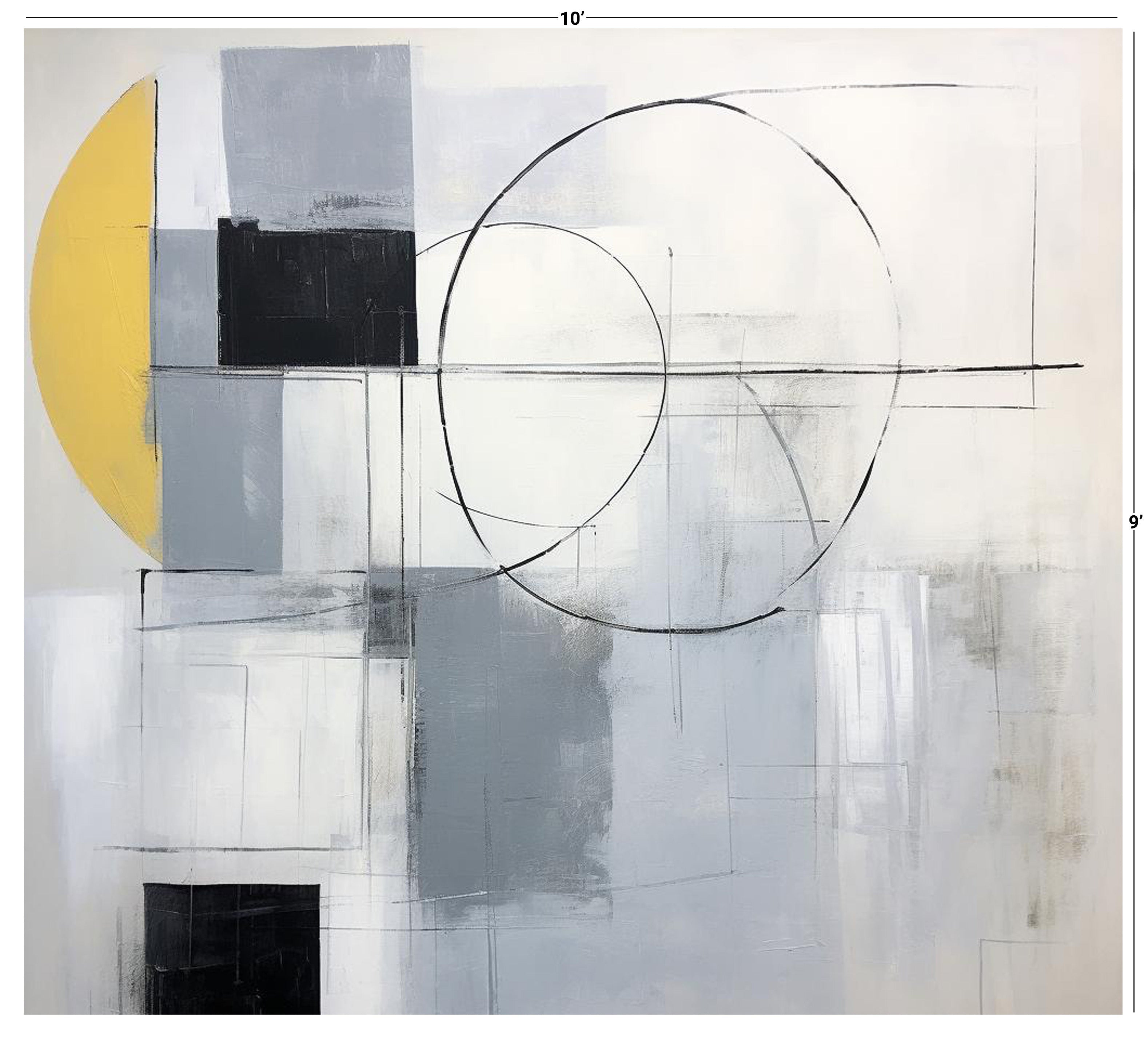 If your wall has two slants, simply identify and measure the longest part of the wall in both the width and the height. Again, we will produce your mural as a square or rectangle, with the cutaways taking place during installation.