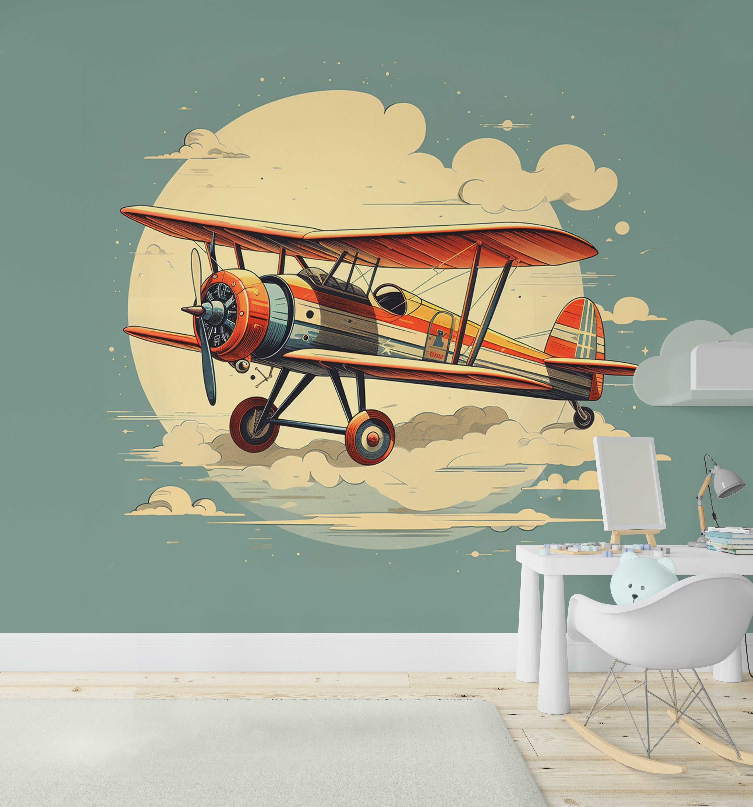 Introducing KD 0010, a premium mural featuring a vintage plane. Bring a touch of sophistication to your space with this exquisite wallpaper. Transform any room into a work of art, reminiscent of a bygone era. Elevate your interior design and create a luxurious atmosphere.