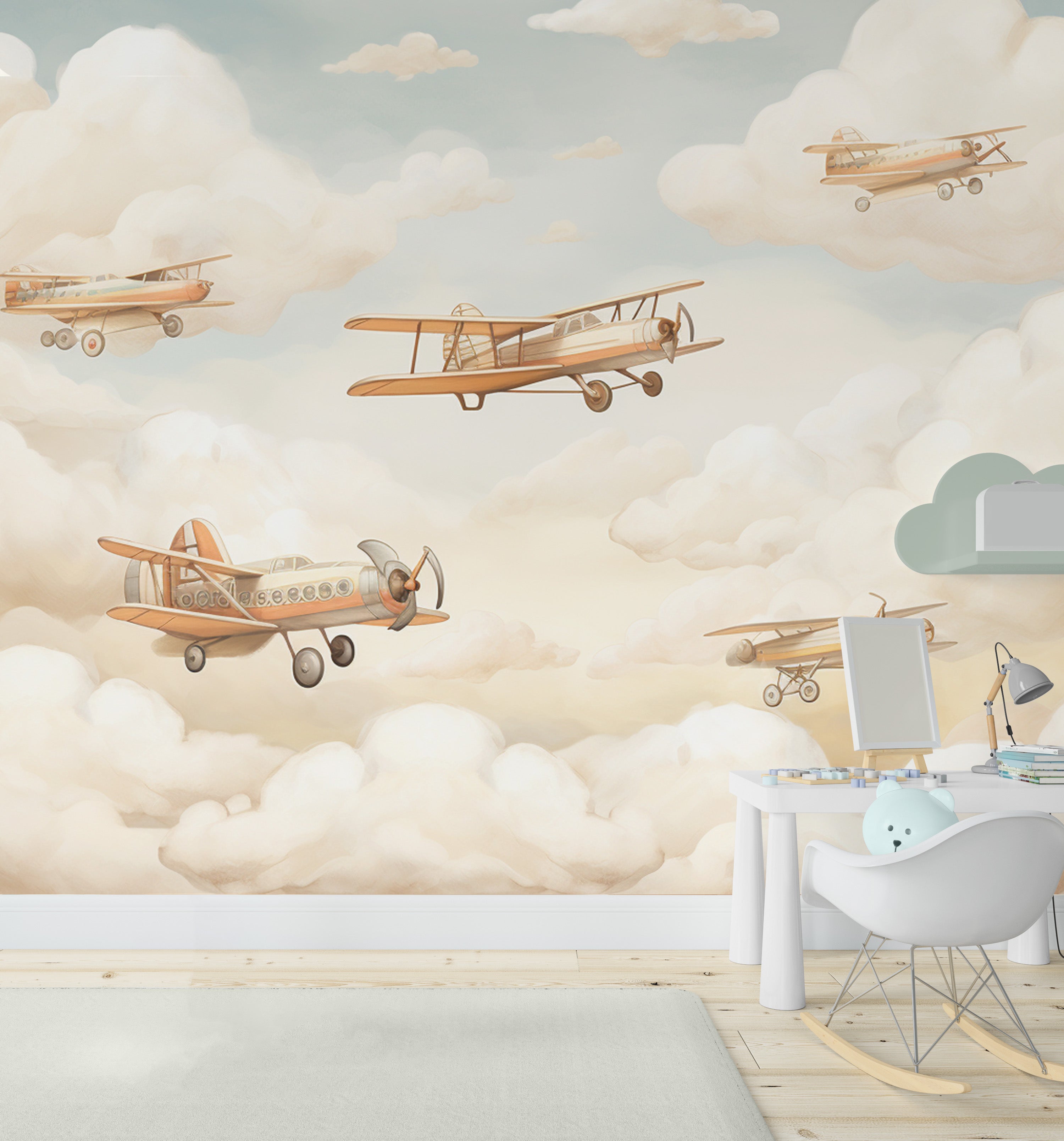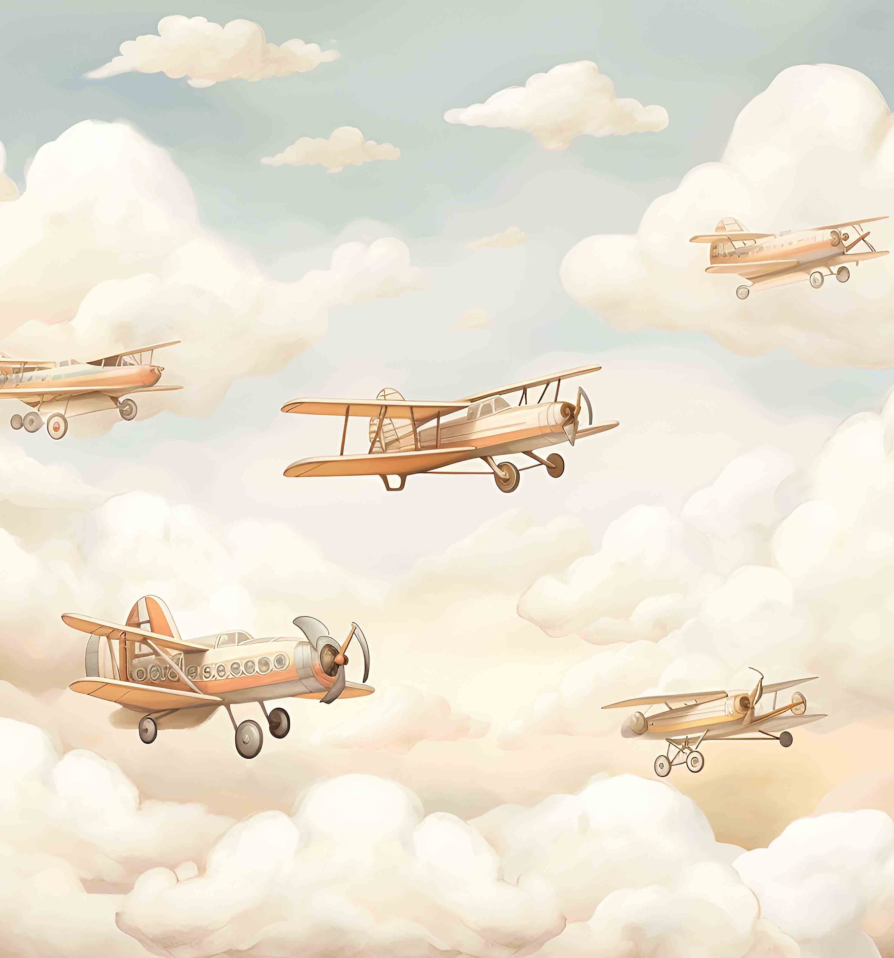 Elevate your child's room with the timeless allure of the KD 009. A Vintage plane adorn this wallpaper, adding a touch of sophistication to any space. With its neutral beige tones, this wallpaper effortlessly complements any decor. Perfect for creating a classic and elegant atmosphere for your little one.