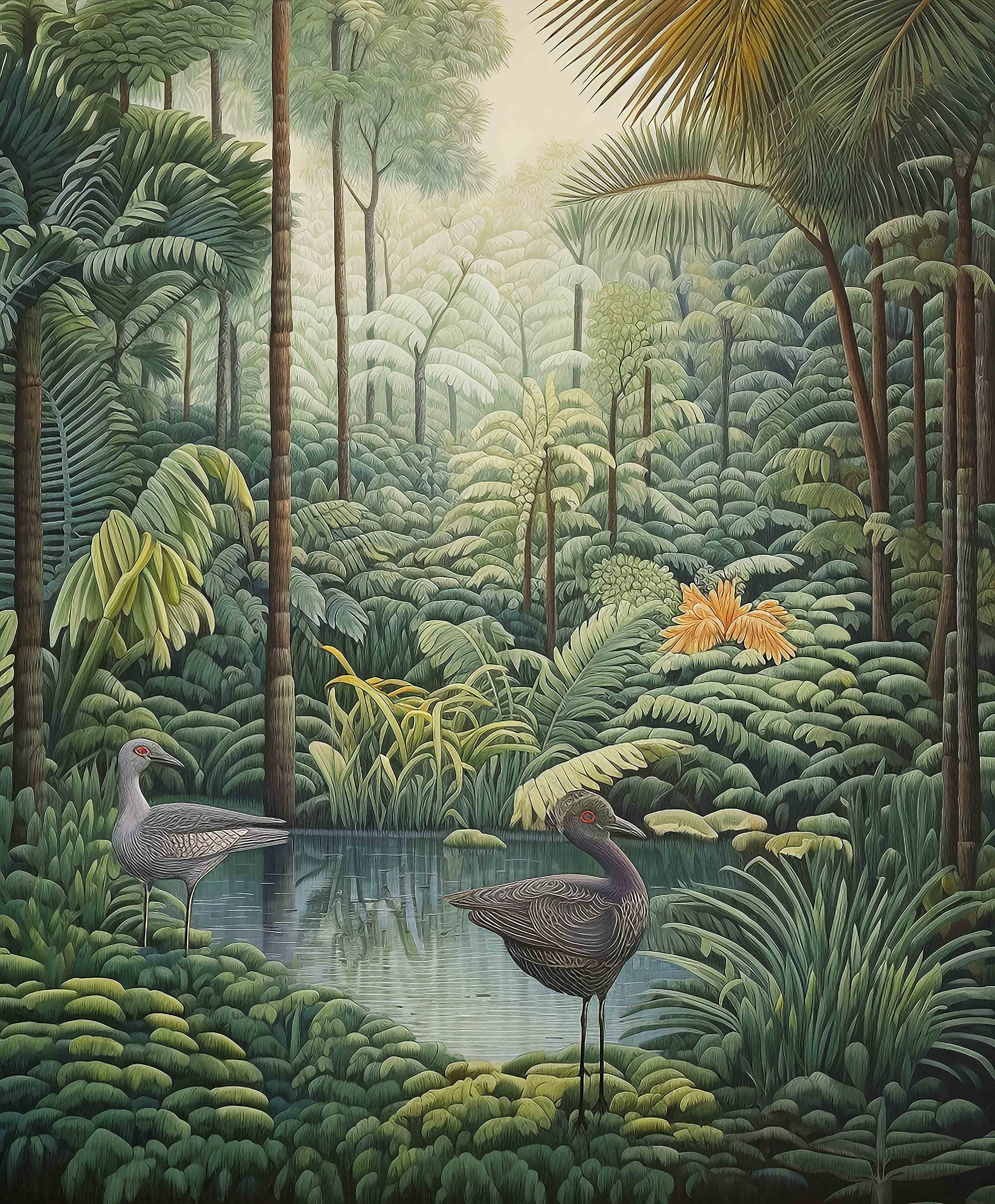 Immerse yourself in the breathtaking allure of our Tropical Oasis Collection. This series showcases vibrant scenes of dense tropical forests, where towering palm trees and cascading waterfalls create a paradise of greenery and life. Birds in flight add a touch of dynamism and grace, making each mural a window into a serene, untouched world.