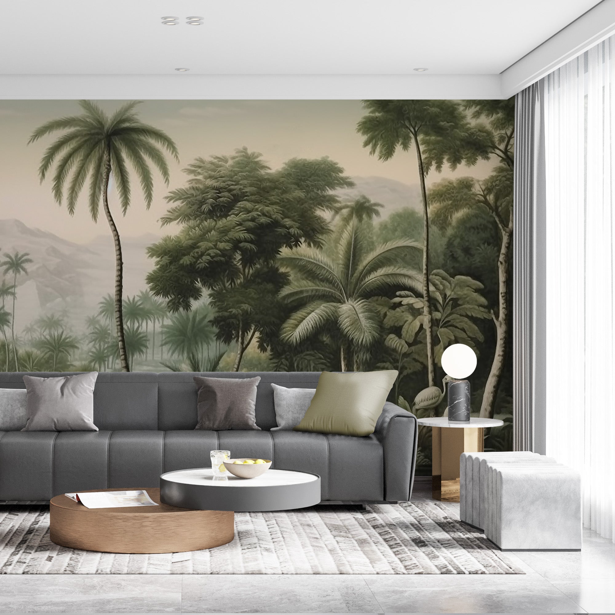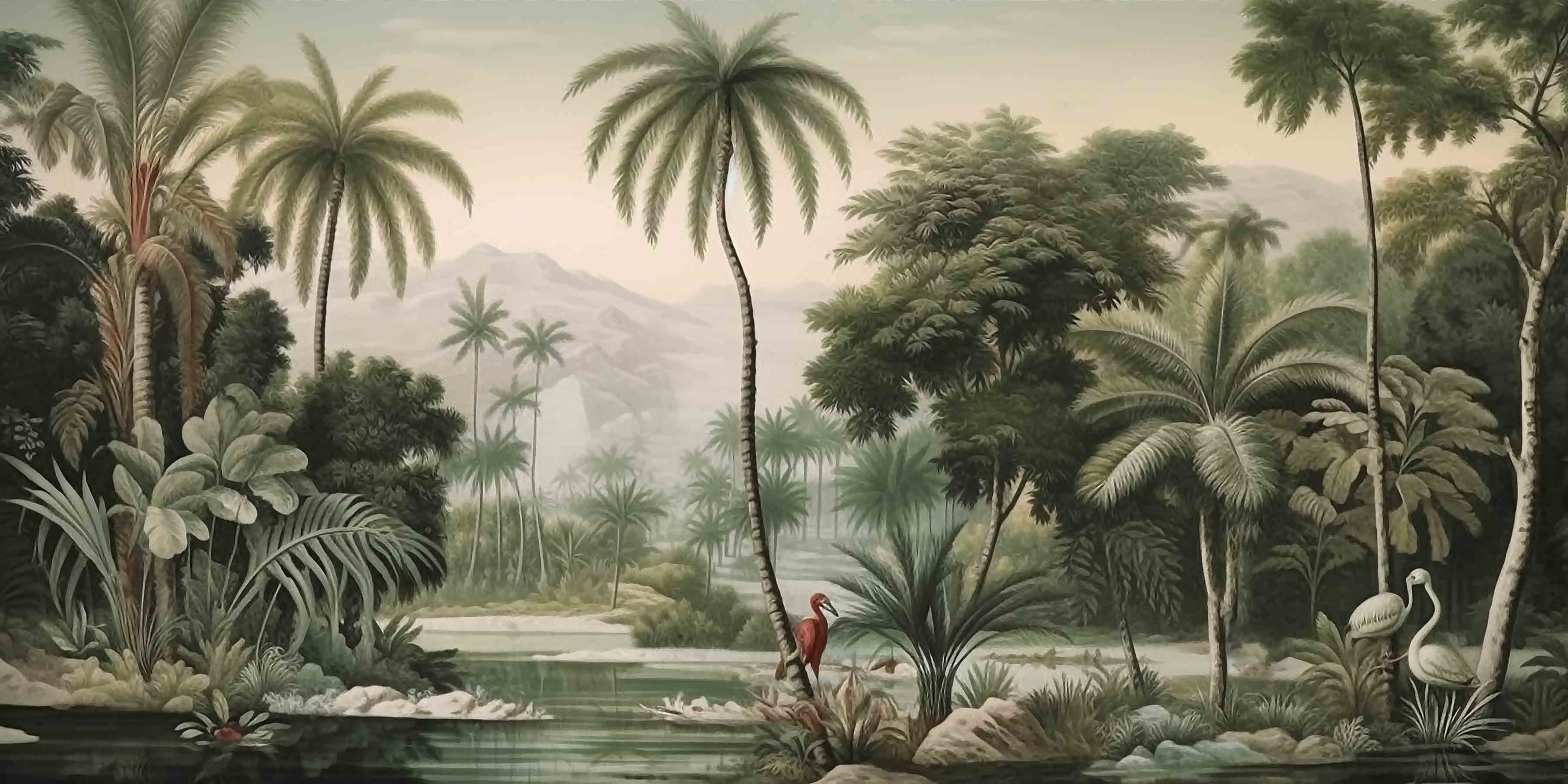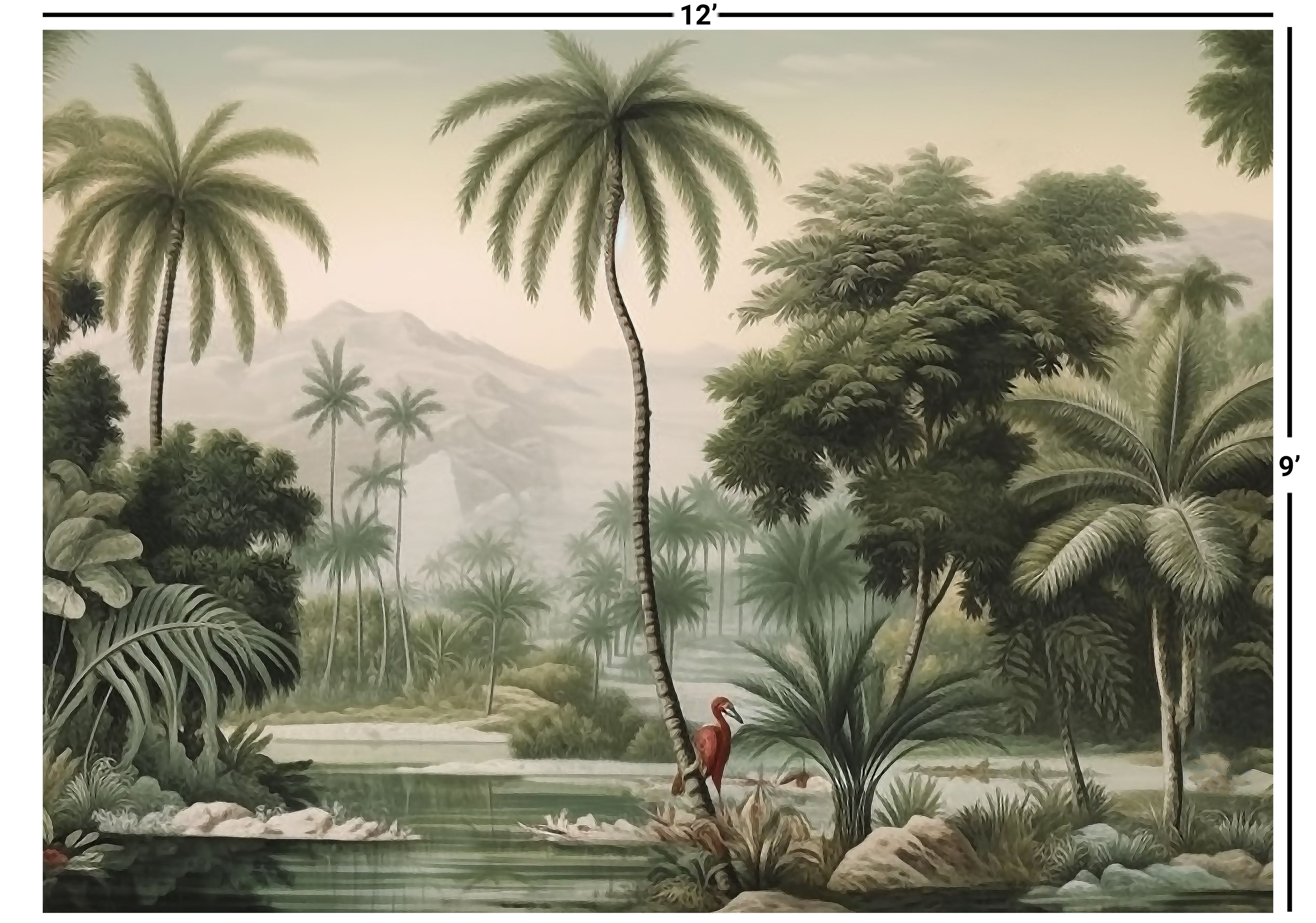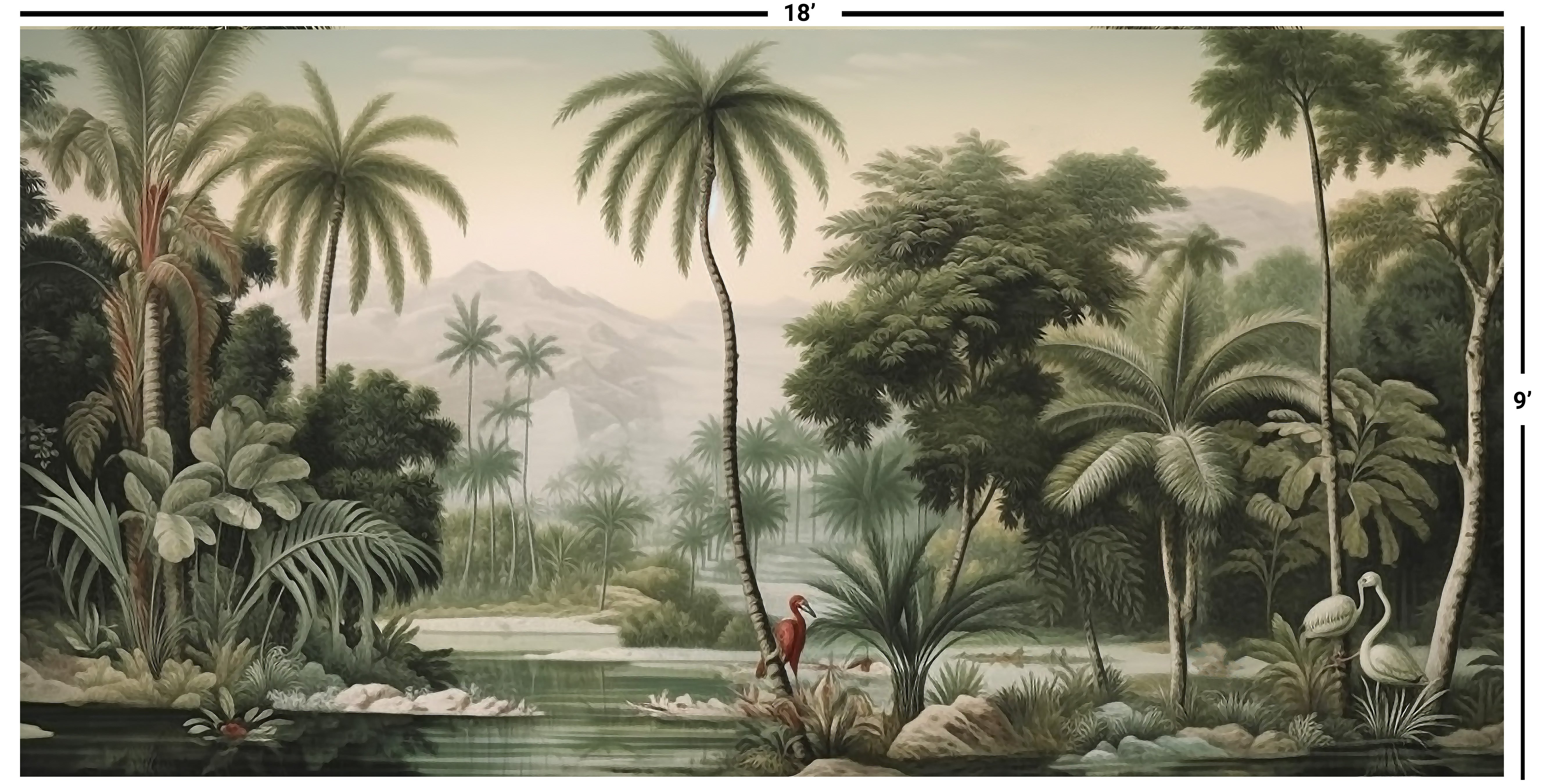 Immerse yourself in the breathtaking allure of our Tropical Oasis Collection. This series showcases vibrant scenes of dense tropical forests, where towering palm trees and cascading waterfalls create a paradise of greenery and life. Birds in flight add a touch of dynamism and grace, making each mural a window into a serene, untouched world.