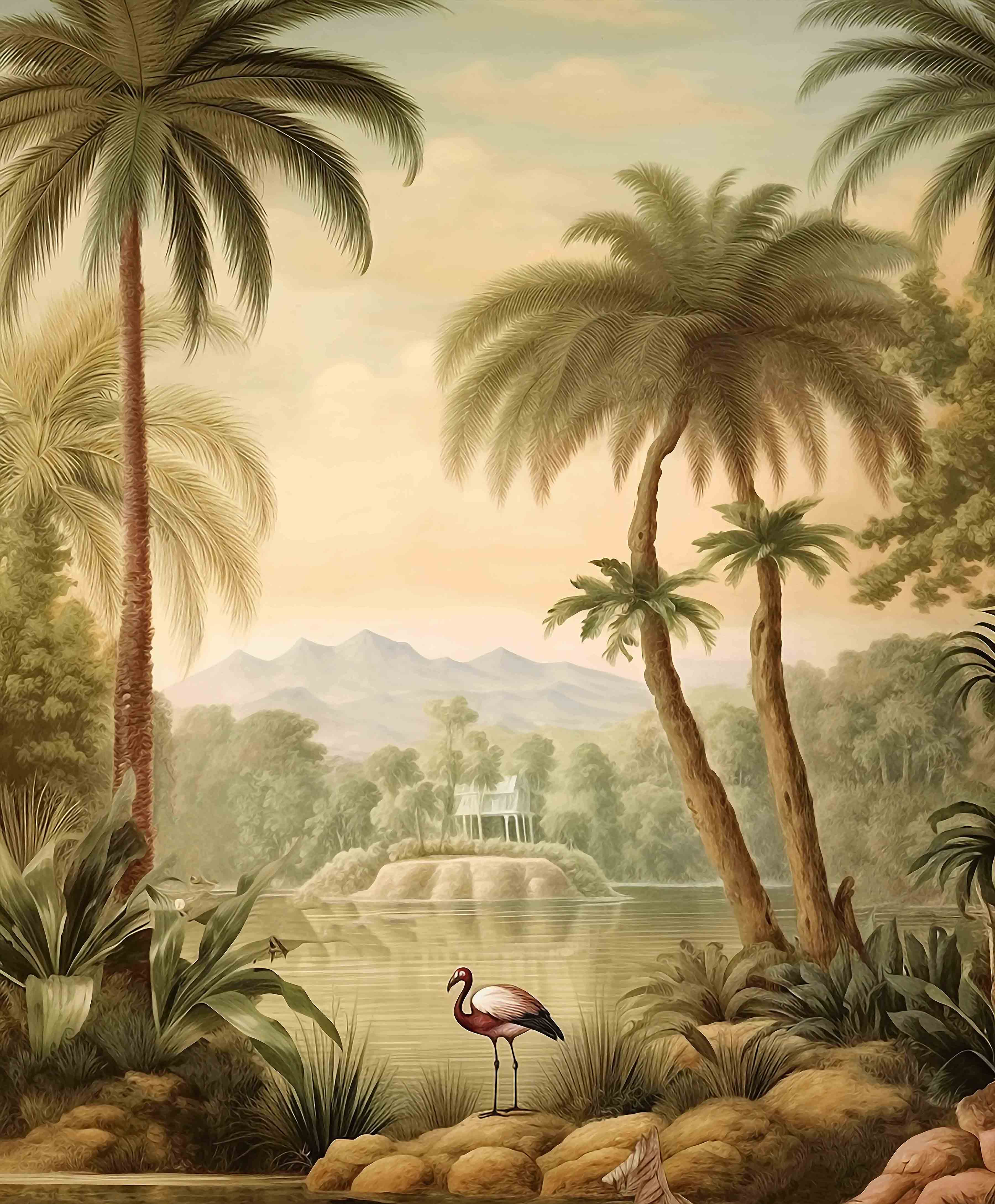 Immerse yourself in the breathtaking allure of our Tropical Oasis Collection. This series showcases vibrant scenes of dense tropical forests, where towering palm trees and cascading waterfalls create a paradise of greenery and life. Birds in flight add a touch of dynamism and grace, making each mural a window into a serene, untouched world.