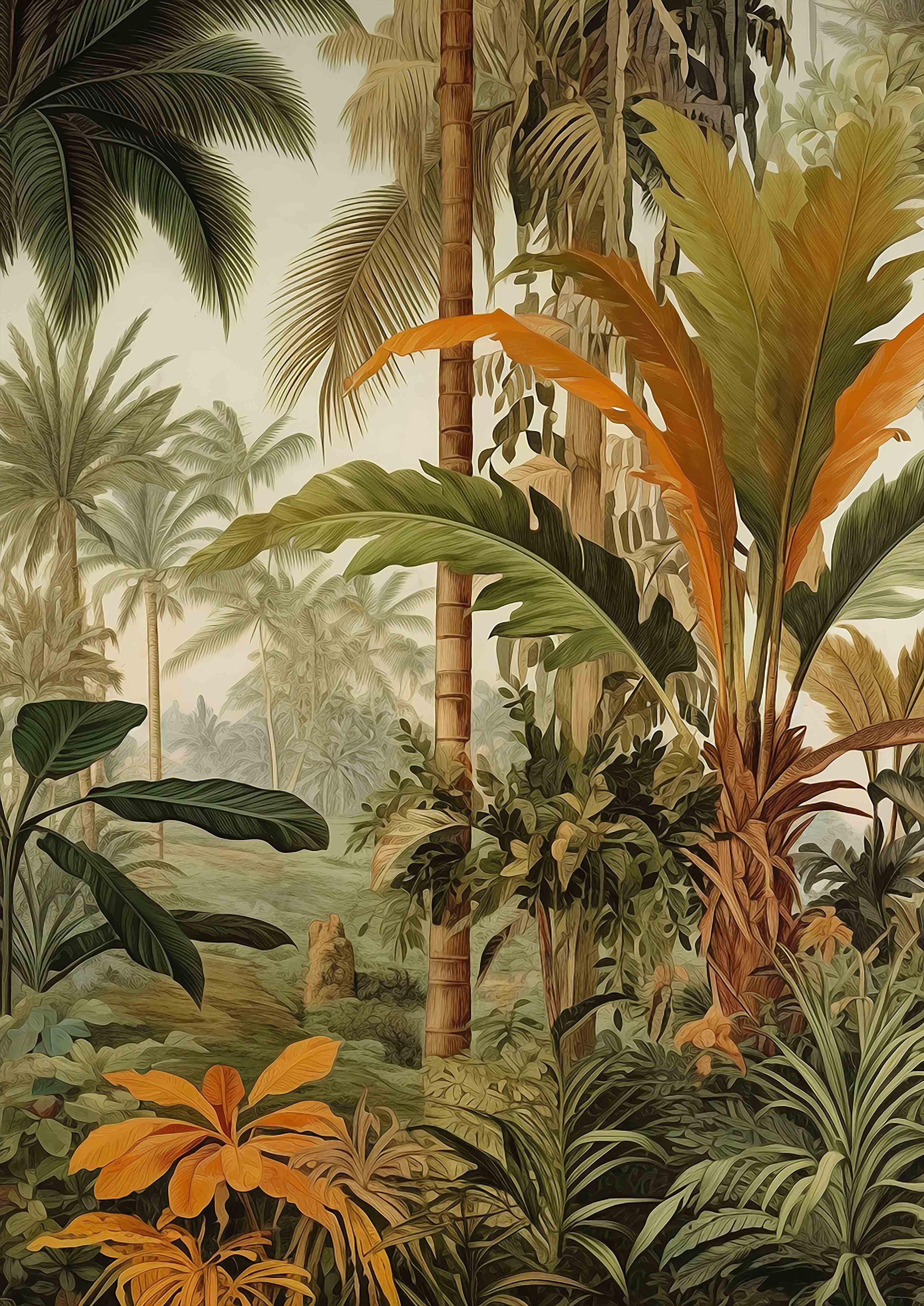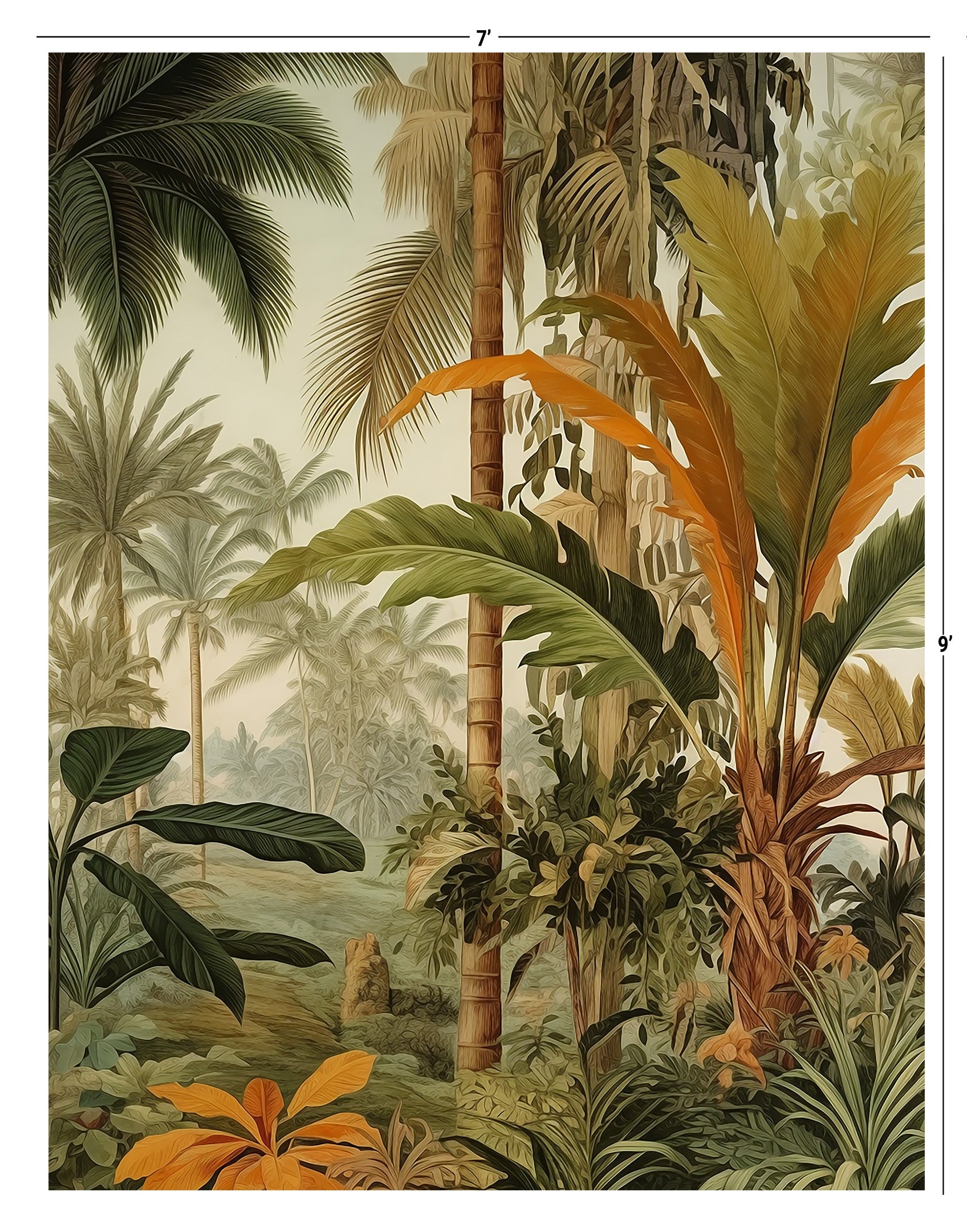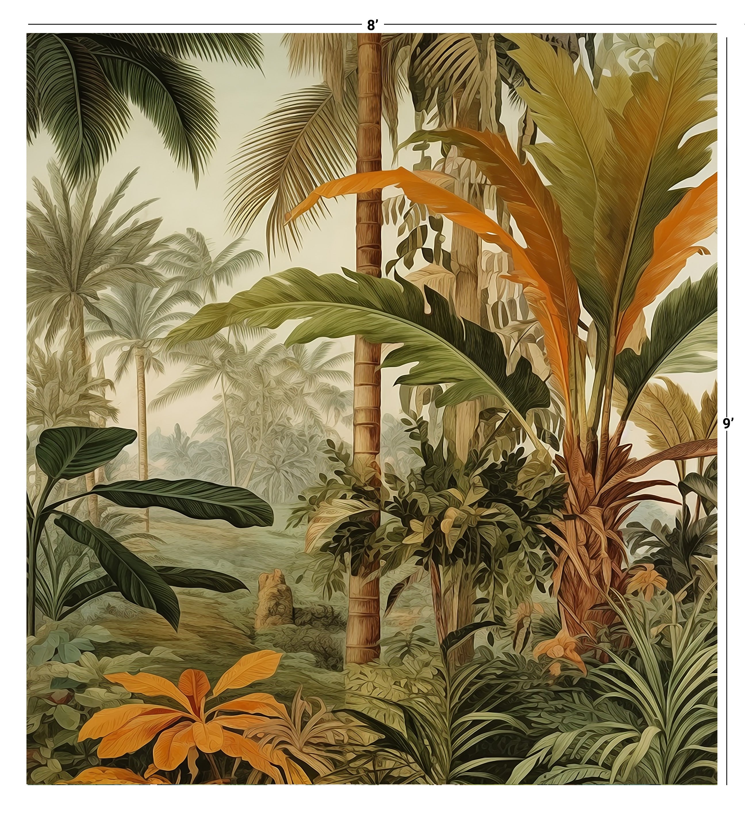 Immerse yourself in the breathtaking allure of our Tropical Oasis Collection. This series showcases vibrant scenes of dense tropical forests, where towering palm trees and cascading waterfalls create a paradise of greenery and life. Birds in flight add a touch of dynamism and grace, making each mural a window into a serene, untouched world.