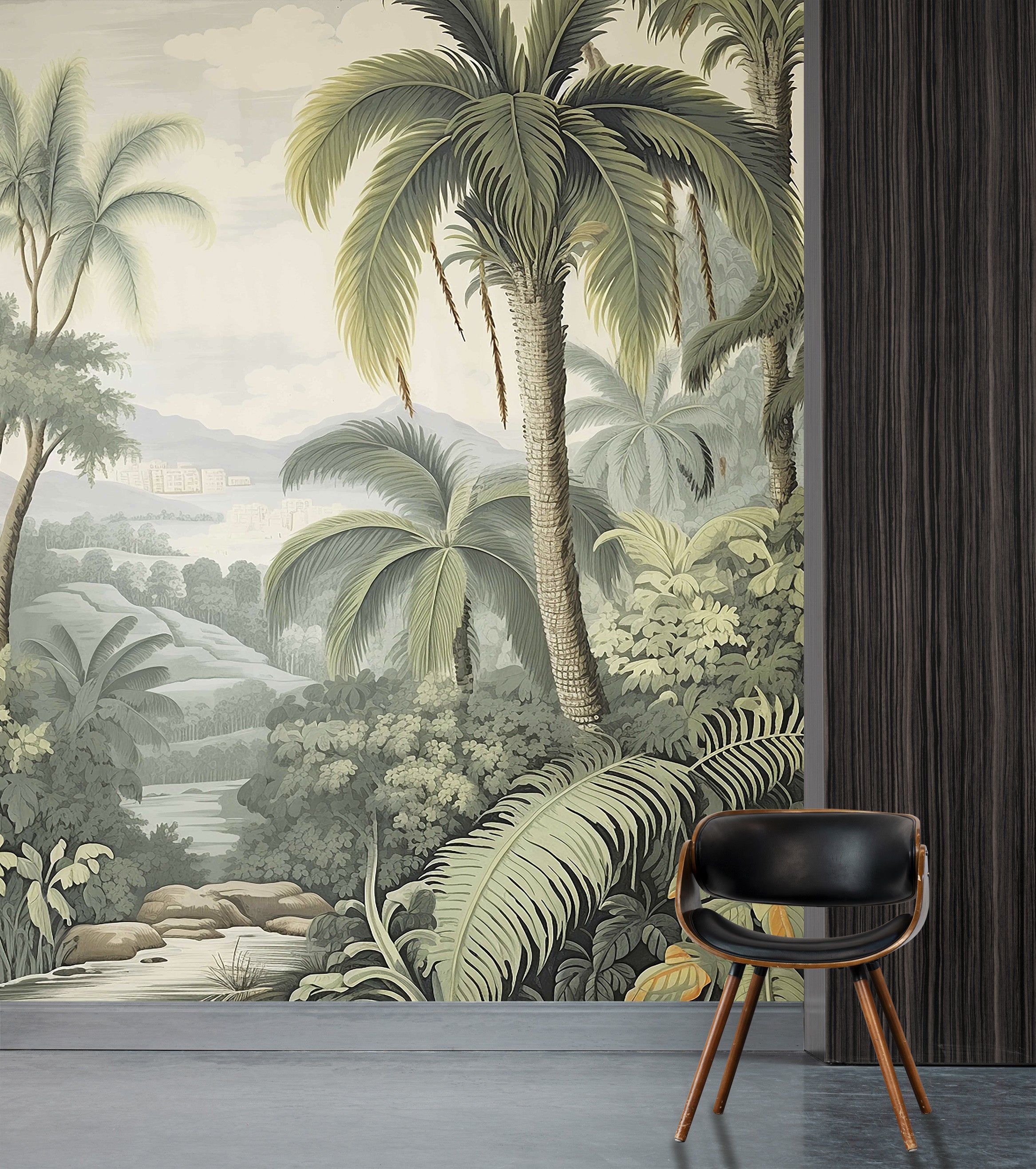 Immerse yourself in the breathtaking allure of our Tropical Oasis Collection. This series showcases vibrant scenes of dense tropical forests, where towering palm trees and cascading waterfalls create a paradise of greenery and life. Birds in flight add a touch of dynamism and grace, making each mural a window into a serene, untouched world.
