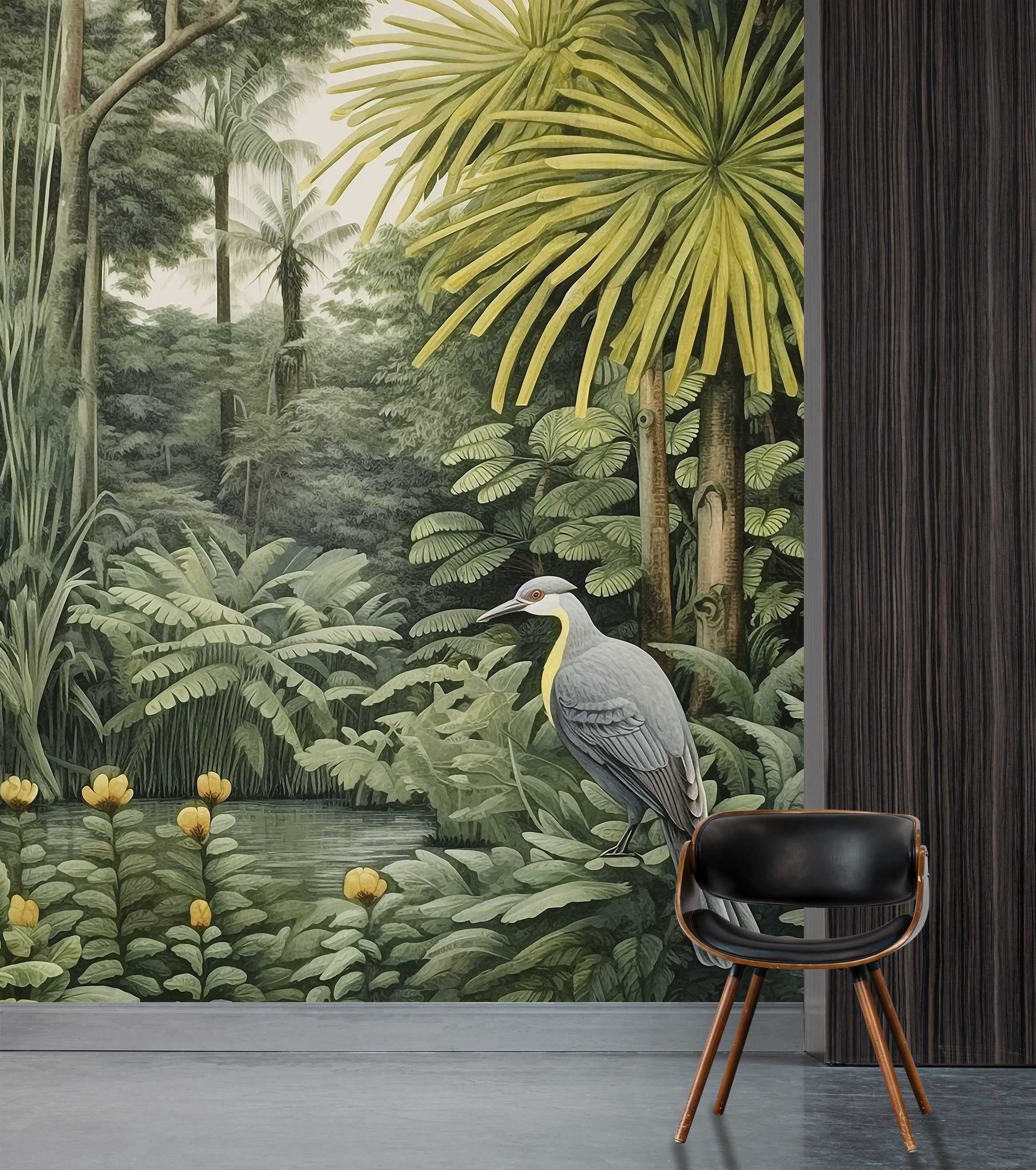 Immerse yourself in the breathtaking allure of our Tropical Oasis Collection. This series showcases vibrant scenes of dense tropical forests, where towering palm trees and cascading waterfalls create a paradise of greenery and life. Birds in flight add a touch of dynamism and grace, making each mural a window into a serene, untouched world.