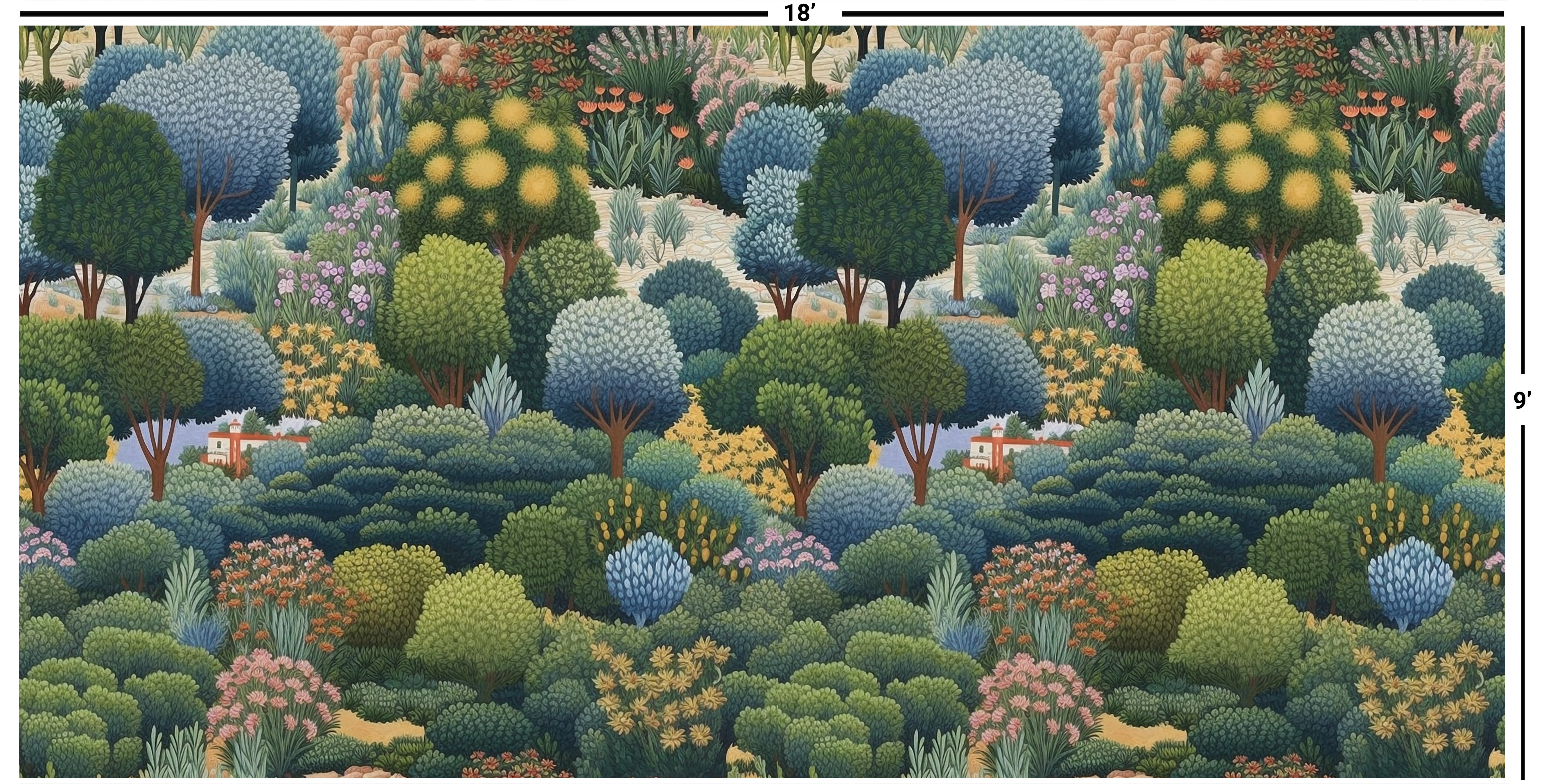 Our Verdant Sanctuary Collection is a tribute to the lush, layered beauty of forested landscapes. Featuring an array of rich, green foliage and delicate flowers, these murals evoke a sense of calm and rejuvenation. The detailed depiction of varied plant life, from towering trees to blooming undergrowth, creates an immersive experience that brings the serenity of nature into your home.