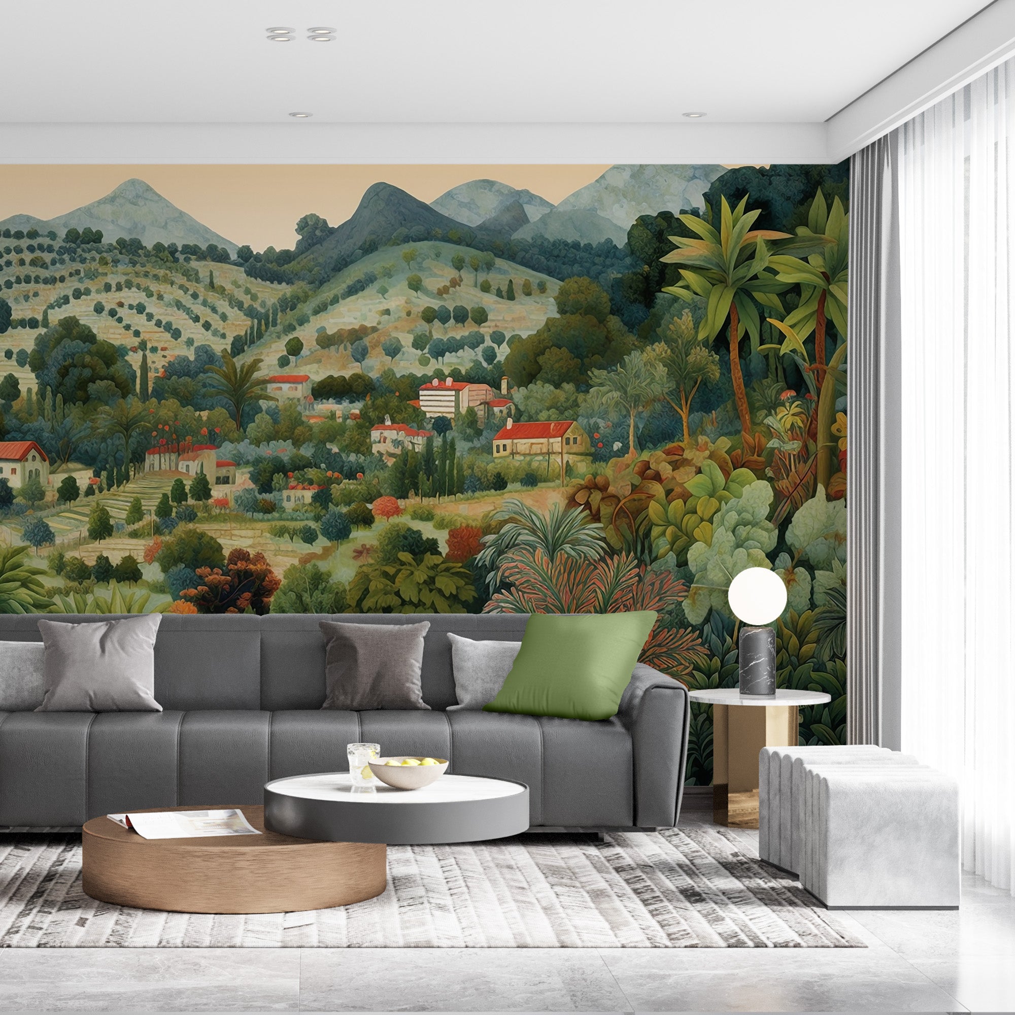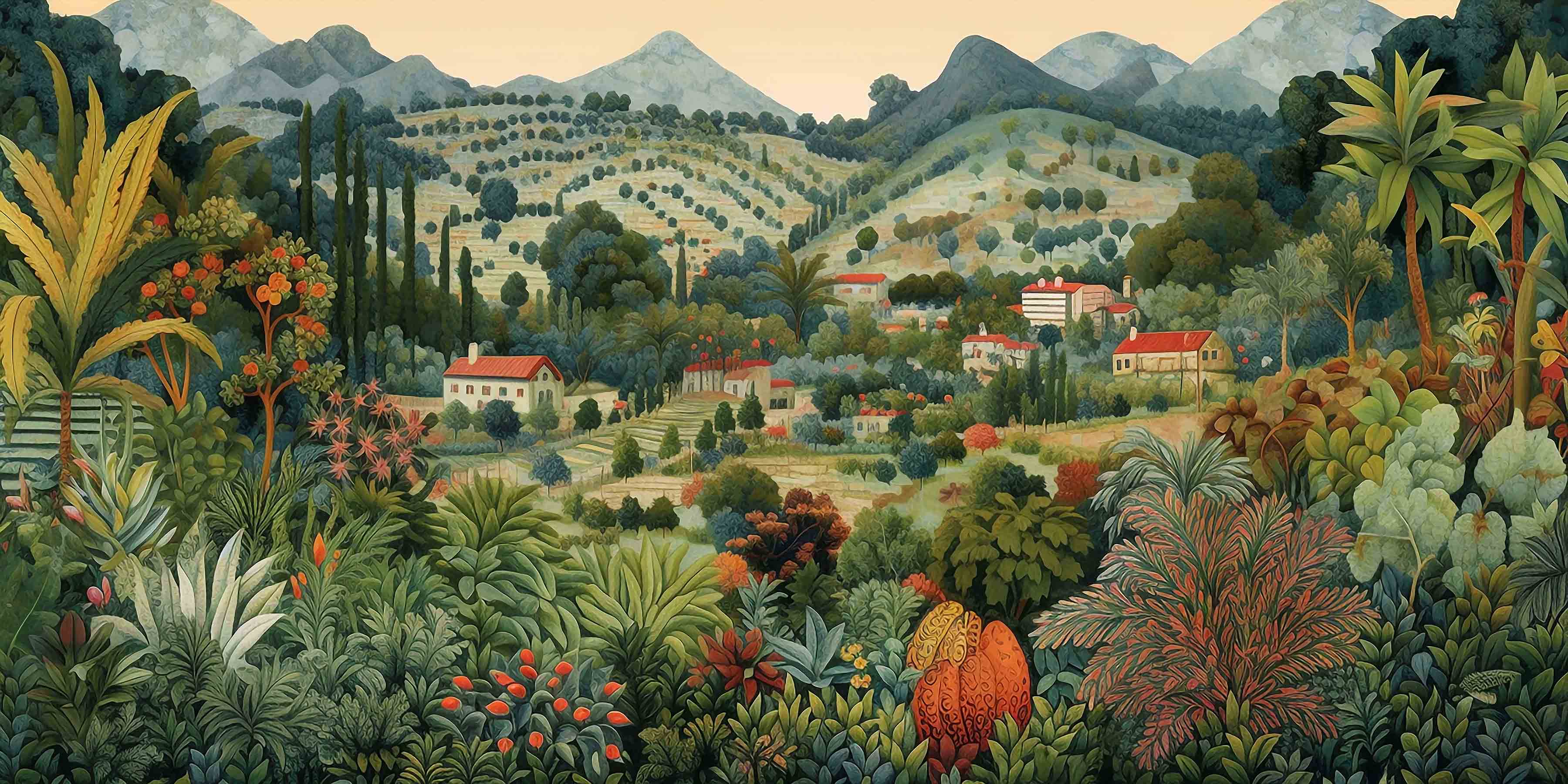 Our Verdant Sanctuary Collection is a tribute to the lush, layered beauty of forested landscapes. Featuring an array of rich, green foliage and delicate flowers, these murals evoke a sense of calm and rejuvenation. The detailed depiction of varied plant life, from towering trees to blooming undergrowth, creates an immersive experience that brings the serenity of nature into your home.