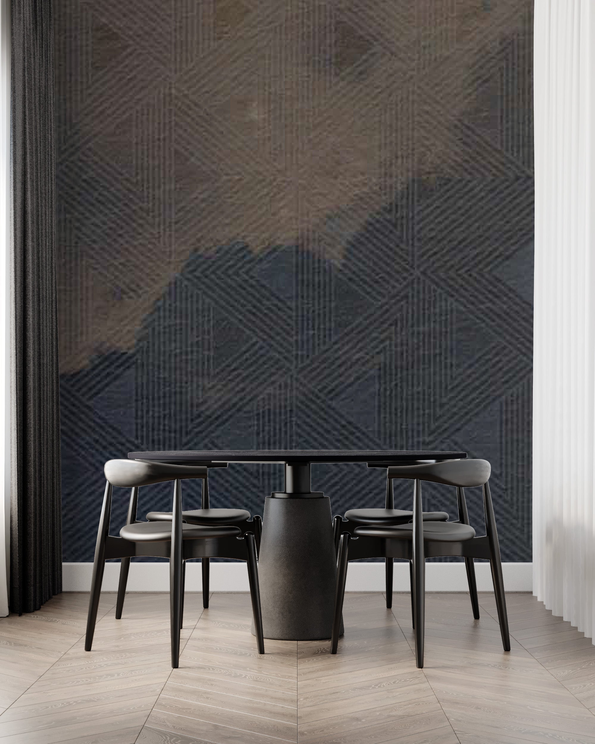 - Once all panels are in place, trim any excess wallpaper along the edges with a utility knife.